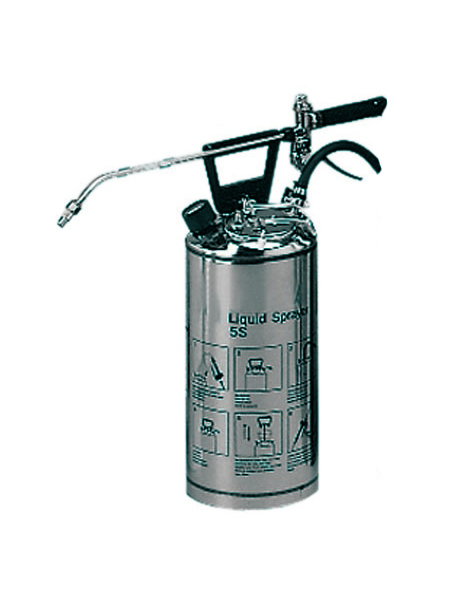 Postřikovač s nádobou o objemu 5 l, vyrobenou z nerez oceli.